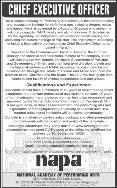 National Academy Of Performing Arts Jobs In Karachi September 2025